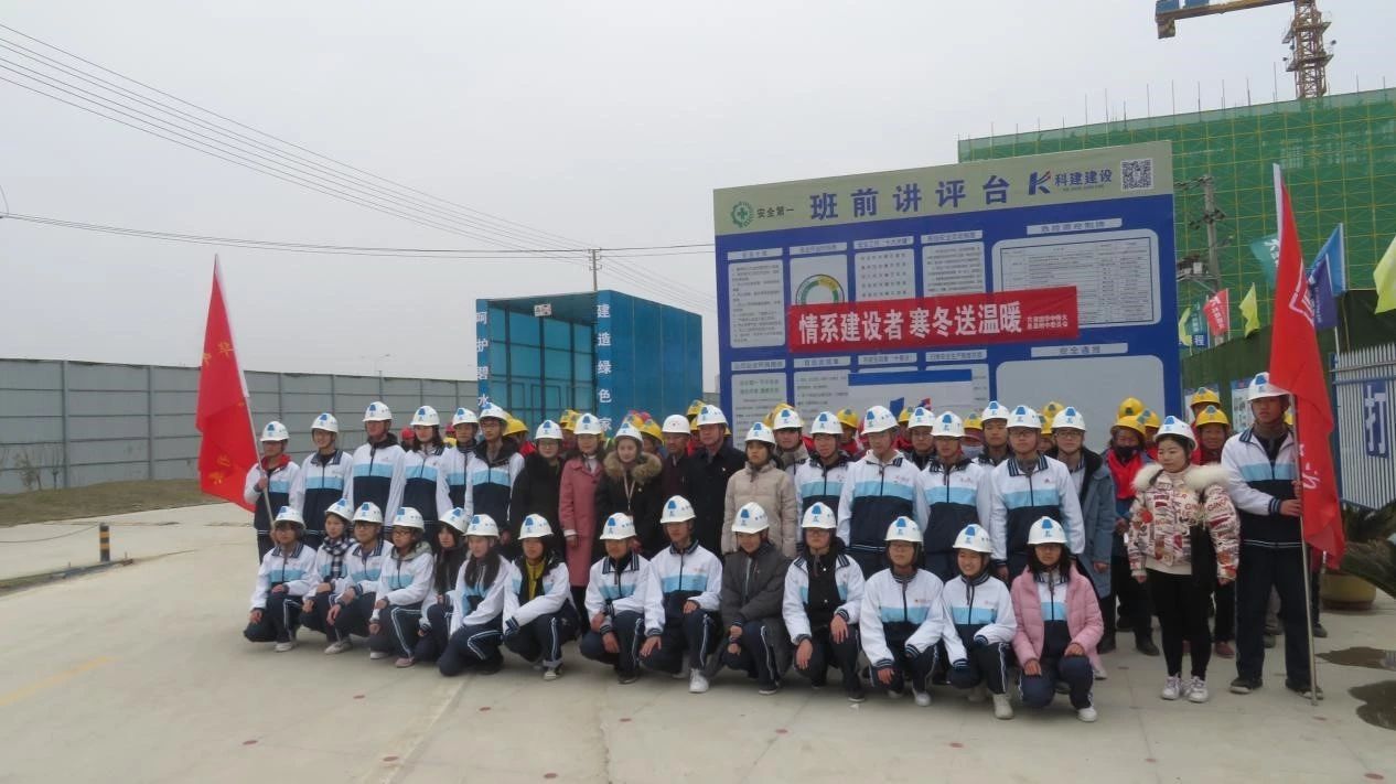 2019年1月27日上午,在春節(jié)來臨之際,息縣教育局黨組成員、息縣華中師范大學(xué)附屬息縣高級中學(xué)黨委書記兼副校長劉臻、息縣高級中學(xué)建設(shè)項目指揮部商務(wù)中心主任劉喜峰等人,攜華中師范大學(xué)附屬息縣高級中學(xué)師生代表深入由河南科建建設(shè)工程有限公司承建的息縣高級中學(xué)建設(shè)項目施工現(xiàn)場,對寒冬時節(jié)奮戰(zhàn)在一線的建設(shè)工人進(jìn)行慰問,并開展一系列送溫暖活動,讓他們感受息縣第二故鄉(xiāng)的溫暖,我公司息縣高級中學(xué)建設(shè)項目項目負(fù)責(zé)人趙傳紅、母彥輝等全程參與了此次活動。