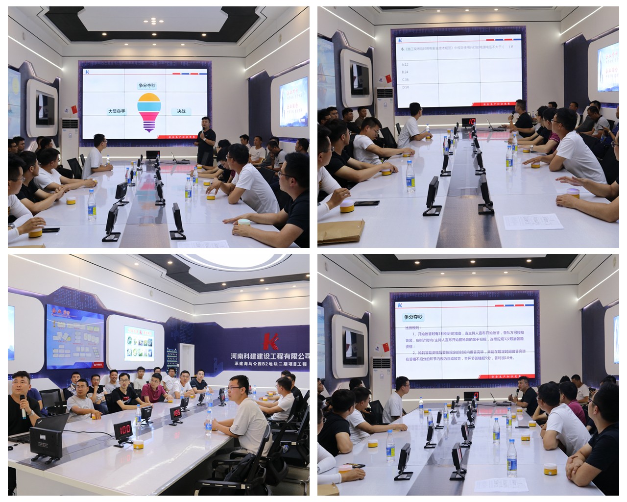 為了進一步增強管理人員安全生產(chǎn)意識,提高安全生產(chǎn)專業(yè)知識,促進安全生產(chǎn)工作進一步規(guī)范化。6月11日下午在公司海馬B2二期項目智慧管理中心舉辦了“層層壓實安全責(zé)任,促進安全形勢好轉(zhuǎn)”為主題的安全知識競答活動。來自公司10個在建項目的29名管理人員參加了競答活動。